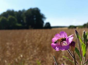 Keywords: fields bee summer nature close plant insect flower blossom bloom bloom summer plant sky
