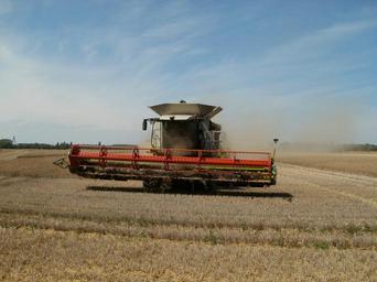 Keywords: fields harvest grain agriculture crop machinery vehicle landscape outdoor season farmland countryside industry
