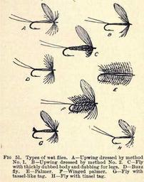 Keywords: Fig51FlyTyingDevices.JPG Fig 51-Types of Wet Flies from The Trout Fly Dresser's Cabinet of Devices 1919 Extracted from PDF version of above work on the Internet Archive 2008-03 Mike Cline PD-old Fly tying