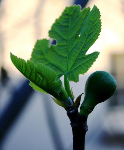 Keywords: fig fruit young swollen new leaf bright green spring renewal growth