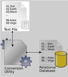 Keywords: FigFileConvert000a.svg A simple diagram depicting conversion of a CSV-format flat file database table into a relational database table Own 2006-11-29 Dreftymac en English Wikipedia Dreftymac cc-by-2 5 Flat file models