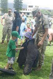 | Keywords: Fighting crime a bite at a time 150602-D-RT812-360.jpg en Cpl Michael Foster a military working dog handler with the Provost Marshal ™s Office helps Kainalu Elementary School students try on a bite suit at Dewey Square June 2 2015 Military police officers from PMO showed the dozens of students how the K-9 unit trains dogs for law enforcement Marine Corps photo by Christine Cabalo/Released 2015-06-02 Christine Cabalo https //www dvidshub net/image/1977522 150602-D-RT812-360 2015-06-05 18 40 MARINE CORPS BASE HAWAII HI US PD-USGov Marine Corps Base Hawaii Images from DoD uploaded by Fæ |