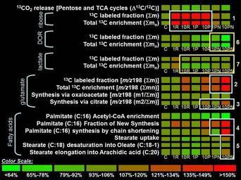 | Keywords: Figures PNU913252(01-20-05).jpg en Stable 13C isotope-based dynamic metabolic profile array of Rosiglitazone Pioglitazone and PNU-91325 in cultured cells fed with U-13C18stearic acid as the tracer The color of each square corresponds to the rate of 13C carbon flux from stearic acid into products such as RNA-ribose DNA-deoxyribose lactate glutamate of the TCA cycle and fatty acids induced as altered by drug treatment The 13C labeled isotopolome readily reveals associations among stearic acid substrate and multiple products in cultured tumor cells liver © Springer Science+Business Media Inc 200610 1007/s11306-006-0015-5; Open Access http //link springer com/article/10 1007/s11306-006-0015-5/fulltext html 2013-02-03 12 36 50 http //link springer com/article/10 1007/s11306-006-0015-5/fulltext html George G Harrigan Jerry Colca Sándor Szalma László G Boros cc-zero Uploaded with UploadWizard Uncategorized 2013 February 3 |