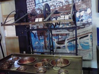 Keywords: Filature machine.jpg en Filature machine of municipal Okaya silk museum ja 市立岡谷蚕糸博物館の糸繰り機 own Miyuki Meinaka 2009-05-30 Public domain Okaya Silk Museum Spinning silk