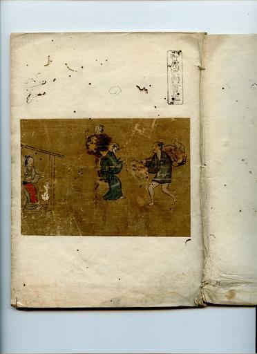 | Keywords: File-Wittig.collection.manuscript.01.japanese.art.scrapbook.image.01.page.03.leaf.02.jpg en First image; fragment of a painting street scene with four people including a porter at least one samurai in casual dress with sword another man a housewife standing in her doorway Wittig collection manuscript-01 a Japanese art scrap-book; identified as containing fragments of paintings prints dating from approximately the Sengoku through Edo periods; item 01 of 13 located on page 03 leaf 02 right-to-left 18 or previous all works in this scrapbook date from approximately the Sengoku through Edo periods Scan of manuscript scrap- book Scanned at 12 800 dpi 48 bit colour raw scan with no enchancements compressed jpg Scale reference scan-bed is approximately 14 x 7 ; more precise measurements pending Image could benefit from restoration full set of images could be joined to create an e-book version of original art scrap-book etc author Original PD-old Japanese manuscripts Scrapbooking Paintings of the Edo period Wittig collection manuscript 01 japanese art scrap-book |