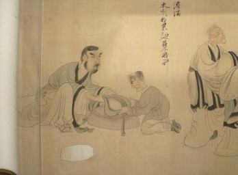 | Keywords: Filling Wine from 'Scenes from the Life of Tao Yuanming' by Chen Hongshou.JPG en Filling Wine from the hand scroll Scenes from the Life of Tao Yuanming by Chen Hongshou Qing dynasty dated 1650 ink and color on silk Honolulu Museum of Art accession 1912 1 own Creator Chen Hongshou dated 1650 Filling wine Cap and gown are my burden Yeast and distiller's rice serve my intoxication Scenes from the Life of Tao Yuanming by Chen Hongshou 1650 PD-old-100 | ||||