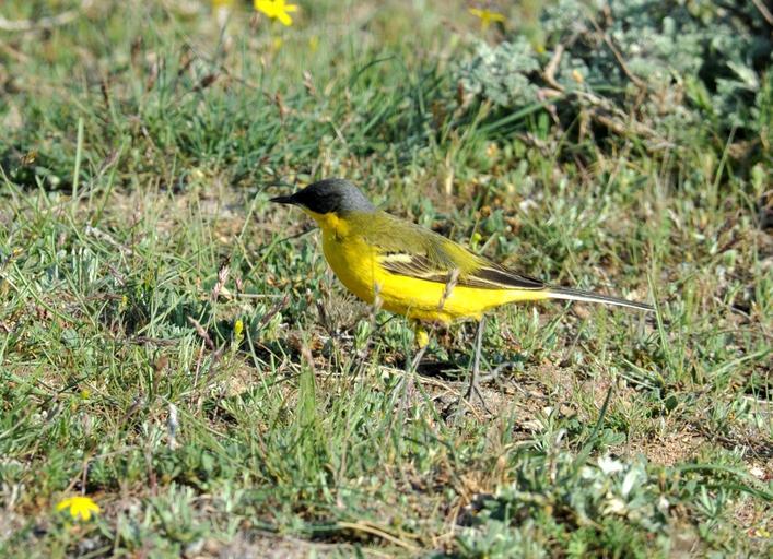 Keywords: finch yellow sparrow bird yellow tail taunting friend immigrant wild life ground