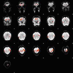 | Keywords: Fingertapping experiment DXIII.jpg en An fMRI depiction of activated brain areas BOLD during an index finger-tapping sequence Experiment and imaging was performed in our dept at RIC at UTHSCSA Analysis for activation depiction was performed by me using fsl I used BET FAST and FEAT to obtain this image The experiment was performed in the following method Subjects performed a finger tapping sequence during a block design paradigm This study focused on only right hand unimanual index finger During the first 30 seconds the subjects moved their right index finger from side to side adduction-abduction at the rate of 2Hz followed by a 30 second rest period This sequence was repeated 6 times for a total of 6 minutes A Gradient-Echo planar sequence was used with the parameters of TR 2s TE 30ms and a flip angle of 90° and sixteen continuous 6mm-thick axial slices with an in-plane spatial resolution of 3mmX3mm I derived Own Zereshk This image was not published anywhere and was part of my class project Functional magnetic resonance imaging Sequence |