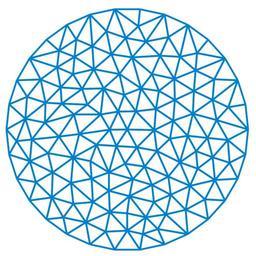 | Keywords: Finite element triangulation.svg Illustration of the en Finite element method the triangulation of the domain self-made with en Matlab 02 18 15 June 2007 UTC Oleg Alexandrov Source code MATLAB The triangulation used in this code and shown above is created with the http //www cs cmu edu/~quake/triangle html Triangle mesh generator <source lang matlab > Solve the problem -\Delta u + c u f with Dirichlet boundary conditions The domain is the disk centered at the origin of radius 1 Its triangulation is read from the end of this file function main c 0; a parameter in the equation see above white 0 99 1 1 1; blue 0 129 205/256; green 0 200 70/256; load the triangulation from the end of the file dummy_arg 0; P get_points dummy_arg ; T get_triangles dummy_arg ; find the number of points and the number of triangles Np k size P ; Nt k size T ; Nb 30; first Nb points in P are on the boundary plot the triangulation lw 1 4; figure 1 ; clf; hold on; axis equal; axis off; for l 1 Nt i T l 1 ; j T l 2 ; k T l 3 ; plot the three edges in each triangle plot P i 1 P j 1 P i 2 P j 2 'linewidth' lw 'color' blue plot P i 1 P k 1 P i 2 P k 2 'linewidth' lw 'color' blue plot P j 1 P k 1 P j 2 P k 2 'linewidth' lw 'color' blue end a hack to deal with bounding box issues s 1 05; plot -s -s ' ' 'color' white ; plot s s ' ' 'color' white ; save as eps and svg needs the plot2svg function saveas gcf 'triangulation eps' 'psc2' plot2svg 'Finite_element_triangulation svg' ; right-hand side f inline '5-x 2-y 2' 'x' 'y' ; f inline '4+0 x 2+0 y 2' 'x' 'y' ; the values of f at the nodes in the triangulation F f P 1 P 2 ; RHS 0 F; RHS RHS Nb+1 Np ; will solve A U RHS an empty sparse matrix of size Np by Np A sparse Np-Nb Np-Nb ; iterate through triangles for l 1 Nt fill in the matrix i T l 1 ; j T l 2 ; k T l 3 ; pii pij pik pjj pjk pkk gii gij gik gjj gjk gkk calc_elems i j k P i P j P k ; One has to consider the cases when a given vertex is on the boundary or not If yes it can't be included in the matrix if i > Nb A i-Nb i-Nb A i-Nb i-Nb + gii + c pii; end if i > Nb j > Nb A i-Nb j-Nb A i-Nb j-Nb + gij + c pij; A j-Nb i-Nb A i-Nb j-Nb ; end if i > Nb k > Nb A i-Nb k-Nb A i-Nb k-Nb + gik + c pik; A k-Nb i-Nb A i-Nb k-Nb ; end if j > Nb A j-Nb j-Nb A j-Nb j-Nb + gjj + c pjj; end if j > Nb k > Nb A j-Nb k-Nb A j-Nb k-Nb + gjk + c pjk; A k-Nb j-Nb A j-Nb k-Nb ; end if k > Nb A k-Nb k-Nb A k-Nb k-Nb + gkk + c pkk; end add the appropriate contributions to the right-hand terms if i > Nb RHS i-Nb RHS i-Nb + F i pii + F j pij + F k pik; end if j > Nb RHS j-Nb RHS j-Nb + F i pij + F j pjj + F k pjk; end if k > Nb RHS k-Nb RHS k-Nb + F i pik + F j pjk + F k pkk; end end plot the sparse matrix more exactly its sign then it is easier to see the pattern figure 6 ; imagesc sign abs A ; colormap 1-gray ; axis ij; axis equal; axis off; save as eps and svg needs the plot2svg function saveas gcf 'sparse_dirichlet eps' 'psc2' plot2svg 'Finite_element_sparse_matrix svg' ; calculate U then add zeros for the points on the boundary U_calc A\RHS; U_calc 0 1 Nb U_calc; exact solution u inline '1-x 2-y 2' 'x' 'y' ; U_exact u P 1 P 2 ; plot the computed solution figure 2 ; clf; plot_solution T P U_calc lw green save as eps and svg needs the plot2svg function saveas gcf 'computed_dirichlet eps' 'psc2' plot2svg 'Finite_element_solution svg' ; plot the exact solution figure 3 ; clf; plot_solution T P U_exact title 'Exact Dirichlet solution' saveas gcf 'exact_dirichlet eps' 'psc2' disp sprintf 'Error between exact solution and computed solution is 0 9g' max abs U_exact-U_calc given the l-th triangle calculate the integrals pij int_K lambda_i lambda_j and gij int_K grad lambda_i dot grad lambda_j function pii pij pik pjj pjk pkk gii gij gik gjj gjk gkk calc_elems i j k P1 P2 P3 extract the x and y coordinates of the points x1 P1 1 ; y1 P1 2 ; x2 P2 1 ; y2 P2 2 ; x3 P3 1 ; y3 P3 2 ; triangle area AT abs x2-x1 y3-y1 - x3-x1 y2-y1 /2; the integrals of lambda_i lambda_j pii AT/6; pij AT/12; pik AT/12; pjj AT/6; pjk AT/12; pkk AT/6; the integrals of grad lambda_i dot grad lambda_j gii x2-x3 x2-x3 + y2-y3 y2-y3 / 4 AT ; gjj x1-x3 x1-x3 + y1-y3 y1-y3 / 4 AT ; gkk x1-x2 x1-x2 + y1-y2 y1-y2 / 4 AT ; gij - x3-x1 x3-x2 + y3-y1 y3-y2 / 4 AT ; gik - x2-x1 x2-x3 + y2-y1 y2-y3 / 4 AT ; gjk - x1-x2 x1-x3 + y1-y2 y1-y3 / 4 AT ; function plot_solution T P U lw color fs Np k size P ; Nt k size T ; create a path in 3D that will trace the outline of the solution X zeros 5 Nt 1 ; Y zeros 5 Nt 1 ; Z zeros 5 Nt 1 ; for l 1 Nt i T l 1 ; j T l 2 ; k T l 3 ; m 5 l-4; X m P i 1 ; Y m P i 2 ; Z m U i ; X m+1 P j 1 ; Y m+1 P j 2 ; Z m+1 U j ; X m+2 P k 1 ; Y m+2 P k 2 ; Z m+2 U k ; X m+3 P i 1 ; Y m+3 P i 2 ; Z m+3 U i ; X m+4 NaN; Y m+4 NaN; Z m+4 NaN; end plot the solution plot3 X Y Z 'linewidth' lw 'color' color set gca 'fontsize' 15 function P get_points dummy_arg P 1 0 0 97799999999999998 0 20799999999999999 0 91400000000000003 0 40699999999999997 0 80900000000000005 0 58799999999999997 0 66900000000000004 0 74299999999999999 0 5 0 86599999999999999 0 309 0 95099999999999996 0 105 0 995 -0 105 0 995 -0 309 0 95099999999999996 -0 5 0 86599999999999999 -0 66900000000000004 0 74299999999999999 -0 80900000000000005 0 58799999999999997 -0 91400000000000003 0 40699999999999997 -0 97799999999999998 0 20799999999999999 -1 5 6700000000000004e-16 -0 97799999999999998 -0 20799999999999999 -0 91400000000000003 -0 40699999999999997 -0 80900000000000005 -0 58799999999999997 -0 66900000000000004 -0 74299999999999999 -0 5 -0 86599999999999999 -0 309 -0 95099999999999996 -0 105 -0 995 0 105 -0 995 0 309 -0 95099999999999996 0 5 -0 86599999999999999 0 66900000000000004 -0 74299999999999999 0 80900000000000005 -0 58799999999999997 0 91400000000000003 -0 40699999999999997 0 97799999999999998 -0 20799999999999999 2 6291902682773483e-17 -0 00065384615384583118 -0 29530436727611131 -0 40714990300538867 0 20468717553848803 -0 45950882973942581 0 5000339709144086 -0 052282439231331621 0 20444