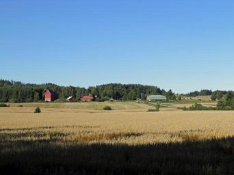 Keywords: finland farm rural fields wheat grain buildings house forest trees woods agriculture sky clouds nature outside country countryside