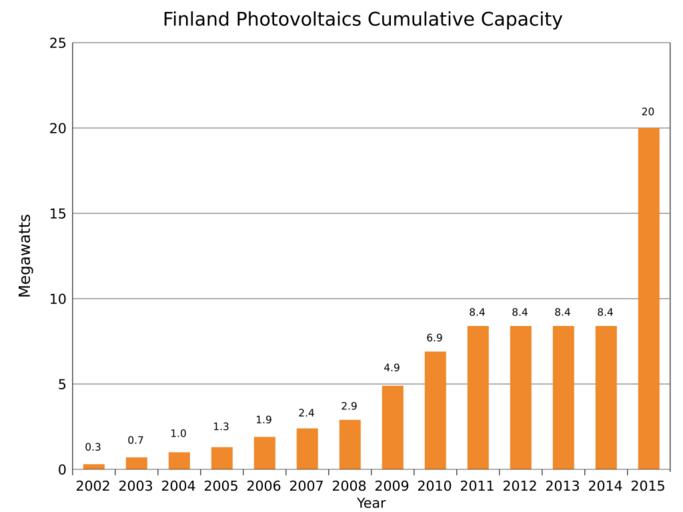 MAKE A MEME View Large Image Finland Photovoltaics Installed Capacity.svg translate yes en Installed photovoltaics in Finland from 2002 to 2015 Source http //www iea-pvps org/index php id 92 eID dam_frontend_push docID 2795 IEA-PVPShttp //www iea-pvps org/fileadmin/...