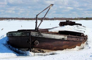 Keywords: finland shipwreck ship boat ruins debris sky clouds winter snow ice lake water frozen forest trees woods nature outside country countryside