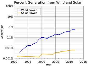 | Keywords: Finland Wind and Solar Generation Percentage-semilog.svg translate yes en Finland wind and solar generation as a percentage of consumption semilog plot Constant percentage growth plots as a straight line on a semilog plot Data from http //www eia gov/cfapps/ipdbproject/iedindex3 cfm tid 6 pid 116 aid 12 cid regions syid 1991 eyid 2012 unit BKWH US EIA 2016-05-06 own Delphi234 other versions cc-zero Wind power in Finland Solar energy in Finland | ||||