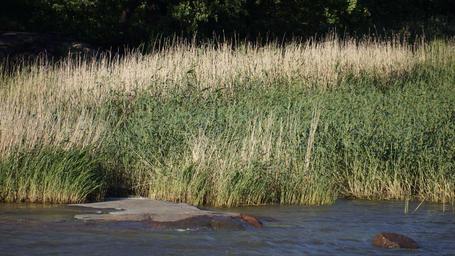 Keywords: finnish helsinki mustikkamaa beach reeds straw stone water sea