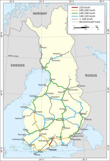 Keywords: Finnish railroad network speeds 2011.svg en The maximum running speeds on the railway network of Finland showing the situation at the end of the year 2010 fi Suomen rataverkon suurimmat liikennenopeudet vuoden 2010 lopussa Finnish_railroad_network-en svg http //www rhk fi/rataverkko/tekniset_tiedot/liikennenopeudet/ 2011-02-05 09 33 UTC Finnish_railroad_network-en svg Mysid derivative work Yaamboo <span class signature-talk >talk</span> Finnish railroad network speeds 2011 de svg showing now the speeds Yaamboo Finnish_railroad_network-en svg Self-made in Inkscape Base map was made by me after CIA 1996 Railroad contours are from CIA revised as per RHK http //www rhk fi/radan_kaytto/verkko</nowiki> Uploaded with derivativeFX SVG rail transport maps of Finland SVG maps in English |