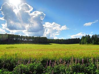 Keywords: finnish tohmajärvi north karelia landscape field countryside scenic clouds sun sky