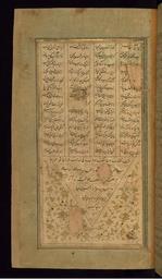 | Keywords: Firdawsi - Colophon - Walters W600620A - Full Page.jpg This folio from Walters manuscript W 600 contains the last of 3 colophons which has a damaged date end of Dhu al-Hijjah 9 5 10th century AH/AD 16th century Safavid ink pigments laid paper cm 32 5 19 accession number W 600 620A 83488 Ahmad date and mode of acquisition unknown seal impression with name on fol 1a Unknown owner 1789 mode of acquisition unknown ownership entry dated 12 Jumadá I 1204 AH/AD 1789 on fol 1a Henry Walters Baltimore date and mode of acquisition unknown Walters Art Museum Henry Walters Acquired by Henry Walters place of origin Iran Walters Art Museum license 2D Shahnameh Safavid Walters MS 600 Media contributed by the Walters Art Museum needs category review |