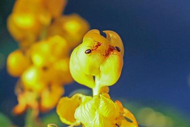 Keywords: fire ants tropical red ant solenopsis animal insect fauna wild nature flowers yellow senna alata candle bush flowers