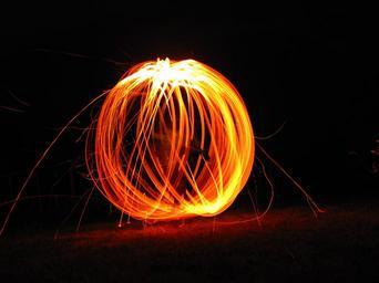 Keywords: fire brand sky flame glow wood fire in the evening red art light mystic mood nice at night orange long shutter speed sphere circle
