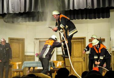 Keywords: fire delete fire delete fire fighter uniform helm water hose head theater bauer theatre fun funny stage