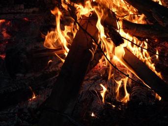 Keywords: fire embers flame hot heat burn campfire wood brand structure cracked glowing orange wood fire