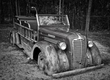 Keywords: fire engine automobile truck retro antique vehicle ladder emergency firetruck vintage