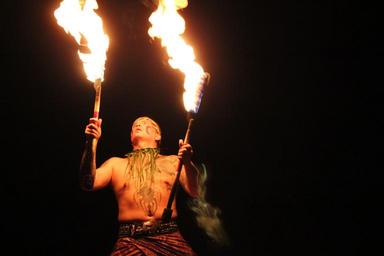 Keywords: fire entertainer tribal man person entertainment night performer danger dancer show fiery fire-show traditional hawaii