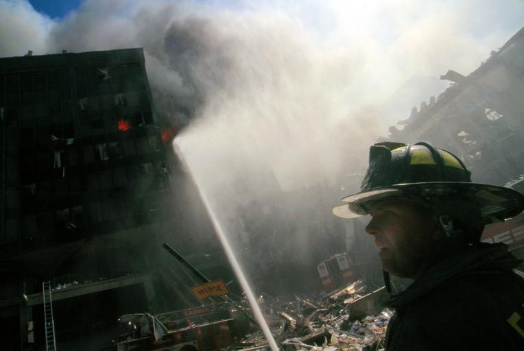 Keywords: outdoor Fire fighter in front of burning building and rubble following September 11th terrorist attack on World Trade Center, New York City. Sept. 11, 2001. Image. Retrieved from the Library of Congress, www.loc.gov/pictures/item/2002719370/. (Accessed September 03, 2016.) Call Number: LC-A05- E35 [item] [P&amp;P] Forms part of: Collection of unattributed photographs ... The 250 color slides made at the World Trade Towers in New York City on September 11, 2001, received from the New York District Attorney's office from an unattributed photographer, are in the public domain. Privacy and publicity rights may apply. These slides were received from the New York District Attorney's office with the photographer relinquishing any and all copyright and right of attribution. Therefore, the photographer's name will not be associated with these photographs. Note – This image has been digitally adjusted for one or more of the following: - fade correction, - color, contrast, and/or saturation enhancement - selected spot and/or scratch removal - cropped for composition and/or to accentuate subject matter - straighten image Fire fighter in front of burning building and rubble following September 11th terrorist attack on World Trade Center, New York City. Sept. 11, 2001. Image. Retrieved from the Library of Congress, www.loc.gov/pictures/item/2002719370/. (Accessed September 03, 2016.) Call Number: LC-A05- E35 [item] [P&P] Forms part of: Collection of unattributed photographs ... The 250 color slides made at the World Trade Towers in New York City on September 11, 2001, received from the New York District Attorney's office from an unattributed photographer, are in the public domain. Privacy and publicity rights may apply. These slides were received from the New York District Attorney's office with the photographer relinquishing any and all copyright and right of attribution. Therefore, the photographer's name will not be associated with these photographs. Note – This image has been digitally adjusted for one or more of the following: - fade correction, - color, contrast, and/or saturation enhancement - selected spot and/or scratch removal - cropped for composition and/or to accentuate subject matter - straighten image <em>Fire fighter in front of burning building and rubble following September 11th terrorist attack on World Trade Center, New York City<em>. Sept. 11, 2001. Image. Retrieved from the Library of Congress, <a href="http://www.loc.gov/pictures/item/2002719370/" rel="nofollow">www.loc.gov/pictures/item/2002719370/</a>. (Accessed September 03, 2016.)