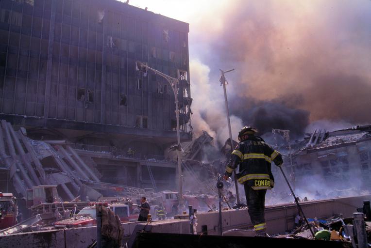 Keywords: outdoor Fire fighters amid smoking rubble following September 11th terrorist attack on World Trade Center, New York City. Sept. 11, 2001. Image. Retrieved from the Library of Congress, www.loc.gov/pictures/item/2002719363/. (Accessed September 03, 2016.) Call Number: LC-A05- D29 [item] [P&amp;P] Forms part of: Collection of unattributed photographs ... The 250 color slides made at the World Trade Towers in New York City on September 11, 2001, received from the New York District Attorney's office from an unattributed photographer, are in the public domain. Privacy and publicity rights may apply. These slides were received from the New York District Attorney's office with the photographer relinquishing any and all copyright and right of attribution. Therefore, the photographer's name will not be associated with these photographs. Note – This image has been digitally adjusted for one or more of the following: - fade correction, - color, contrast, and/or saturation enhancement - selected spot and/or scratch removal - cropped for composition and/or to accentuate subject matter - straighten image Fire fighters amid smoking rubble following September 11th terrorist attack on World Trade Center, New York City. Sept. 11, 2001. Image. Retrieved from the Library of Congress, www.loc.gov/pictures/item/2002719363/. (Accessed September 03, 2016.) Call Number: LC-A05- D29 [item] [P&P] Forms part of: Collection of unattributed photographs ... The 250 color slides made at the World Trade Towers in New York City on September 11, 2001, received from the New York District Attorney's office from an unattributed photographer, are in the public domain. Privacy and publicity rights may apply. These slides were received from the New York District Attorney's office with the photographer relinquishing any and all copyright and right of attribution. Therefore, the photographer's name will not be associated with these photographs. Note – This image has been digitally adjusted for one or more of the following: - fade correction, - color, contrast, and/or saturation enhancement - selected spot and/or scratch removal - cropped for composition and/or to accentuate subject matter - straighten image <em>Fire fighters amid smoking rubble following September 11th terrorist attack on World Trade Center, New York City</em>. Sept. 11, 2001. Image. Retrieved from the Library of Congress, <a href="http://www.loc.gov/pictures/item/2002719363/" rel="nofollow">www.loc.gov/pictures/item/2002719363/</a>. (Accessed September 03, 2016.)