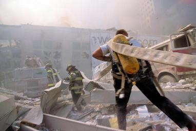 | Keywords: Fire fighters carrying water hose through rubble September 11th following terrorist attack on World Trade Center, New York City. Sept. 11, 2001. Image. Retrieved from the Library of Congress, www.loc.gov/pictures/item/2002719360/. (Accessed September 03, 2016.) Call Number: LC-A05- C27 [item] [P&amp;P] Forms part of: Collection of unattributed photographs ... The 250 color slides made at the World Trade Towers in New York City on September 11, 2001, received from the New York District Attorney's office from an unattributed photographer, are in the public domain. Privacy and publicity rights may apply. These slides were received from the New York District Attorney's office with the photographer relinquishing any and all copyright and right of attribution. Therefore, the photographer's name will not be associated with these photographs. Note – This image has been digitally adjusted for one or more of the following: - fade correction, - color, contrast, and/or saturation enhancement - selected spot and/or scratch removal - cropped for composition and/or to accentuate subject matter - straighten image Fire fighters carrying water hose through rubble September 11th following terrorist attack on World Trade Center, New York City. Sept. 11, 2001. Image. Retrieved from the Library of Congress, www.loc.gov/pictures/item/2002719360/. (Accessed September 03, 2016.) Call Number: LC-A05- C27 [item] [P&P] Forms part of: Collection of unattributed photographs ... The 250 color slides made at the World Trade Towers in New York City on September 11, 2001, received from the New York District Attorney's office from an unattributed photographer, are in the public domain. Privacy and publicity rights may apply. These slides were received from the New York District Attorney's office with the photographer relinquishing any and all copyright and right of attribution. Therefore, the photographer's name will not be associated with these photographs. Note – This image has been digitally adjusted for one or more of the following: - fade correction, - color, contrast, and/or saturation enhancement - selected spot and/or scratch removal - cropped for composition and/or to accentuate subject matter - straighten image <em>Fire fighters carrying water hose through rubble September 11th following terrorist attack on World Trade Center, New York City</em>. Sept. 11, 2001. Image. Retrieved from the Library of Congress, <a href="http://www.loc.gov/pictures/item/2002719360/" rel="nofollow">www.loc.gov/pictures/item/2002719360/</a>. (Accessed September 03, 2016.)