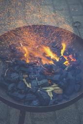 Keywords: fire fire bowl embers flame burn hot blaze garden grill heat grilling glowing light kindle brand campfire grill flares fiery warm at night black