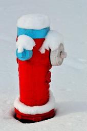 Keywords: fire hydrant snow winter landscape red-white-blue colors