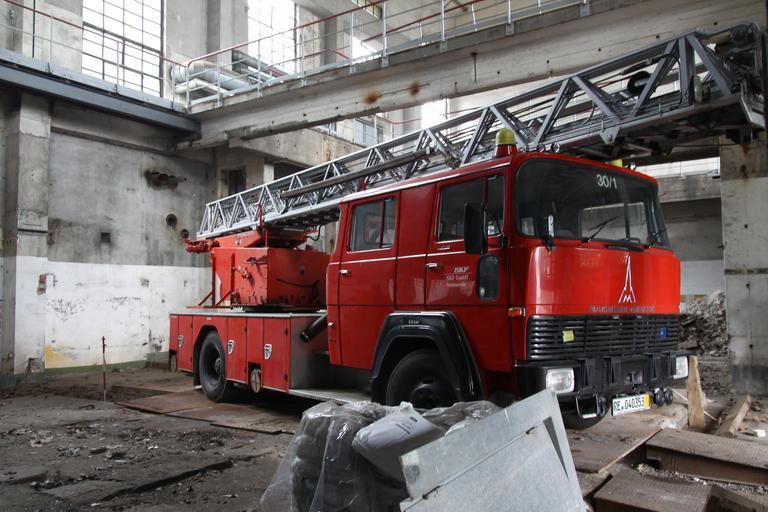 Keywords: fire truck red warehouse deutz magarius hall building head