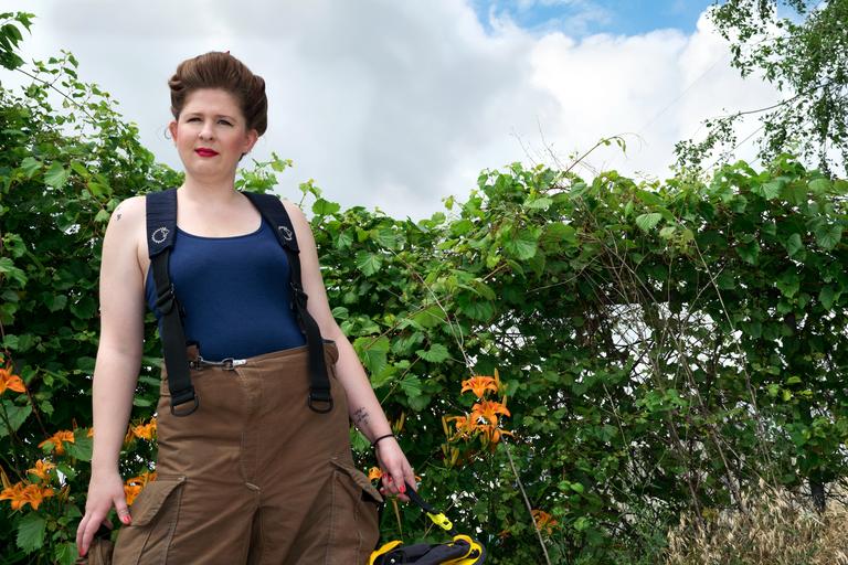 Keywords: firefighter woman rescue firefighting female department girl protection emergency occupation workwear service suit adult young confident outdoors blue sky uniform standing successful job professional