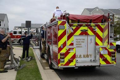 | Keywords: Firefighters work together in DC 121009-N-CG900-001.jpg en Firefighters from Naval District Washington Fire and Emergency Services NDW F ES; Engine 41 and D C Fire and EMS Truck 7 work together racking a 1 75 inch attack hose line after a reported structure fire on March Lane at the Joint Base Anacostia-Bolling JBAB The fire contained to a stove sent heavy smoke to the second and third floor while two occupants were outdoors decorating for Halloween and another occupant was asleep in a third floor room according to NDW F ES; Battalion Chief John McDonald the Incident Commander A total of 53 Firefighters and Emergency Medical Service EMS personnel staffing seven pumpers; two ladder trucks; one rescue truck; two ambulances; four chief officers and two additional units from the NDW F ES; and the D C FEMS departments responded to the emergency An additional NDW F ES; pumper ladder truck and Haz-Mat unit were on another emergency call nearby One additional D C Fire and EMS pumper also responded to JBAB but was returned before arriving at the scene JBAB-based NDW F ES; Engine 41 was the first fire suppression unit to arrive at the scene The pumper ™s crew quickly established a water supply at the nearest fire hydrant; deployed a fire attack hose line entering the structure and performed a search to ensure all occupants were safety evacuated from the building D C FEMS units and NDW F ES; Engine 42 based at the Washington Navy Yard combined efforts to quickly locate the source of the smoke at a stove; contain the situation and remove the smoke from the dwelling There were no injuries as a result of the emergency McDonald reported The cause of the emergency was determined to be items left unattended on the stove according to a fire report 2012-10-09 Joseph P Cirone https //www dvidshub net/image/719915 121009-N-CG900-001 2012-10-11 16 27 WASHINGTON DC US PD-USGov-Military-Navy Joint Base Anacostia-Bolling Images from DoD uploaded by Fæ |