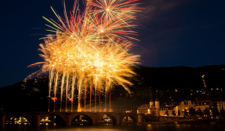 Keywords: fireworks heidelberg castle lighting night fortress bridge neckar