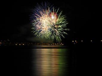 Keywords: fireworks mirroring night water surface