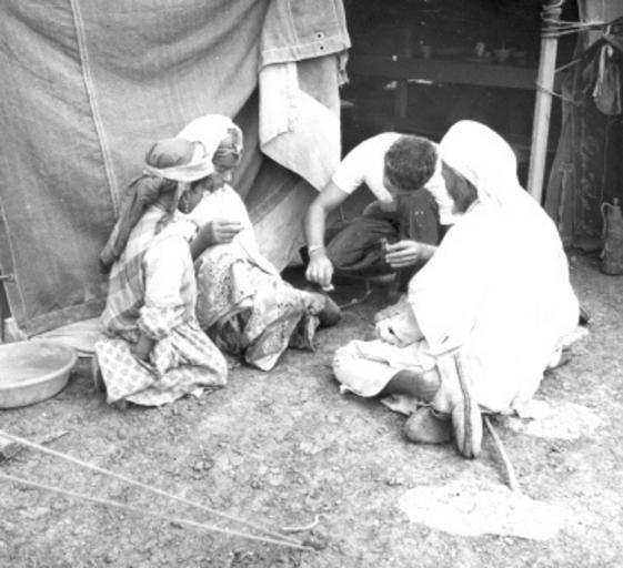 | Keywords: first-aid pax algeria firstaidpaxalgeria mennonite board of missions mennoniteboardofmissions robert weaver robertweaver blackandwhite monochrome black and white Caption: 1956. PAX men like Robert Weaver often had to give first-aid since there were no nurses or doctors available. Citation: Mennonite Board of Missions. Photographs. Algeria Pax, 1955-1963. IV-10-7.2 Box 1 folder 27, photo #52. Mennonite Church USA Archives - Goshen. Goshen, Indiana. Caption: 1956. PAX men like Robert Weaver often had to give first-aid since there were no nurses or doctors available. Citation: Mennonite Board of Missions. Photographs. Algeria Pax, 1955-1963. IV-10-7.2 Box 1 folder 27, photo #52. Mennonite Church USA Archives - Goshen. Goshen, Indiana. |