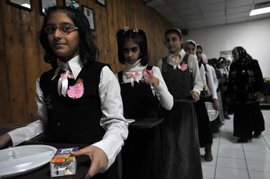 | Keywords: First-ever video conference between Iraqi, U.S. children DVIDS129006.jpg en Iraqi children visit the chow hall at Forward Operating Base Falcon Iraq that hosted the first ever video teleconference between Iraqi students and American students Nov 12 2008 Students from Nolanville Elementary outside of Fort Hood Army Base Texas interact with Iraqi students of Al Khartoon Elementary located in the Doura community of southern Baghdad The students asked each other various questions building relations between their two cultures 2008-11-12 Petty Officer 2nd Class Todd Frantom https //www dvidshub net/image/129006 081112-N-+++++-018 2008-11-16 23 37 FORWARD OPERATING BASE FALCON IQ PD-USGov-Military-Navy Forward Operating Base Falcon Images from DoD uploaded by Fæ |