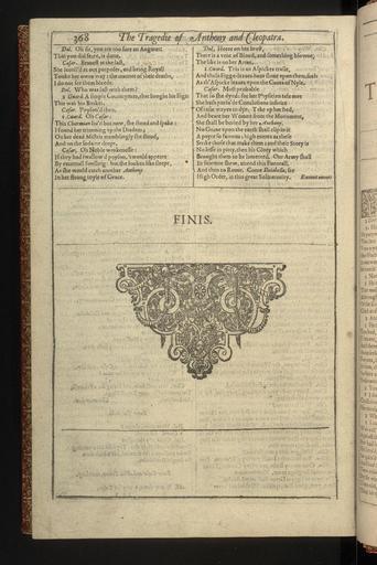 Keywords: First Folio, Shakespeare - 0875.jpg 0874 0875 0876 Antony and Cleopatra by William Shakespeare