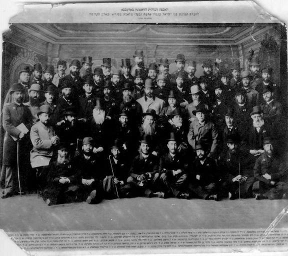 | Keywords: First General Meeting of the Odessa Committee, Odessa, May 1890.jpg en The first general meeting of the Odessa Committee In the front row from right to left 4 Ahad HaAm 6 Yehoshua Eisenshteft In the second row 2 Shmuel Barbash 4 L Pinsker 5 Shmuel Mohilever 6 Avraham Grinberg 9 Jacob Mazeh In the third row 9 Ze'ev Tyomkin 4 Yisrael Jasinowski שמוא מוה יבר; 2 ד ר יהודה ייב פינסקר; 3 אברה גרינברג; 4 ש מה א תר פריץ; 5 מנשה מרג ית; 6 שמוא ברב ש; 7 משה פישרוביץ; 8 אשר גינצברג אחד הע ; 9 יעקב ובארסקי; 10 יהושע אייזנשטט ברזי י ; 11 מרדכי רבינוביץ בן-עמי ; 12 ירתמיא שטראקמטה שטארקמיט ; 13 גצ טובבין; 14 ו דימיר וו ף פיטקיס; 15 יהודה ייב אמציס בסקי; 16 חיי אטינגר ממזריטש ; 17 משה בר ין מדינבורג ; 18 ש ו רבינוביץ ש ו ע יכ מקייב ; 19 מרדכי פדובה מבריסק ; 20 משה ייב י יינב ו מאודסה ; 21 א כסנדר ה וי צדרבוי מפטרבורג ; 22 מרדכי פו ינקובסקי מקייב ; 23 ד ר יעקב ברנשטיין-כהן מקישינב ; 24 אברה א יהו ובארסקי מבא טה ; 25 ד ר יוסף חזנוביץ; 26 אייזיק בן-טובי מביא יסטוק ; 27 דב בער ירוחמזון משדה בן ; 28 וו ף ווי נסקי מקרמנצ'וג ; 29 ' בריסקין משדה בן ; 30 יהודה יב ברגר מפינסק ; 31 ראובן שוכמן מניקו אייב ; 32 נחו רוטמן רויטמן מקישינב ; 33 א יהו זאב וין אפשטיין; 34 א יעזר קפ ן ורשה ; 35 נח ב וך מווי נה ; 36 ישעיה ברייטמן; 37 ח א גורודישטיאן קישינב ; 38 משה קאמיונסקי מוויניצה ; 39 מרדכי בן ה הכהן מהומ ; 40 זאב ברמן מפטרבורג ; 41 חיי א יעזר מושקאט מבריסק ; 42 ש מה בר יאנד מקישינב ; 43 צבי יב כצמן מחארקוב ; 44 אברה הרכבי מייקטרינוס ב ; 45 יעקב בן-יעקב מווי נה ; 46 ישרא יאסינובסקי מוורשה ; 47 זאב ו דימיר טיומקין מיי יזבתגרד ; 48 נח יפשיץ מקישינב ; 49 חיי פסטרנק מבוהופו ; 50 מיכ מיידנסקי מייקטרינוס ב ; 51 יהושע סירקין ממינסק ; 52 הרב יעקב מזא ה ממוסקבה ; 53 חיי צ'ריקובר מפו טבה ; 54 א' פר מייקטרינוס ב ; 55 ג' באז ינסקי מיי יזבתגרד ; 56 ש ב טַרטָקובסקי צ'רקאסי א מופיע בתצ ו אב השתתף באספה מנח אוסישקין ממוסקבה The David B Keidan Collection of Digital Images from the Central Zionist Archives via http //via lib harvard edu 80/via/deliver/deepLinkItem recordId olvwork456249 componentId FHCL 3223677 Harvard University Library ; better version http //www kedem-auctions com/node/41133 here n/a 1890-05 PD-RusEmpire Zionism Jewish people of the Russian Empire Photographs from the Central Zionist Archives |
