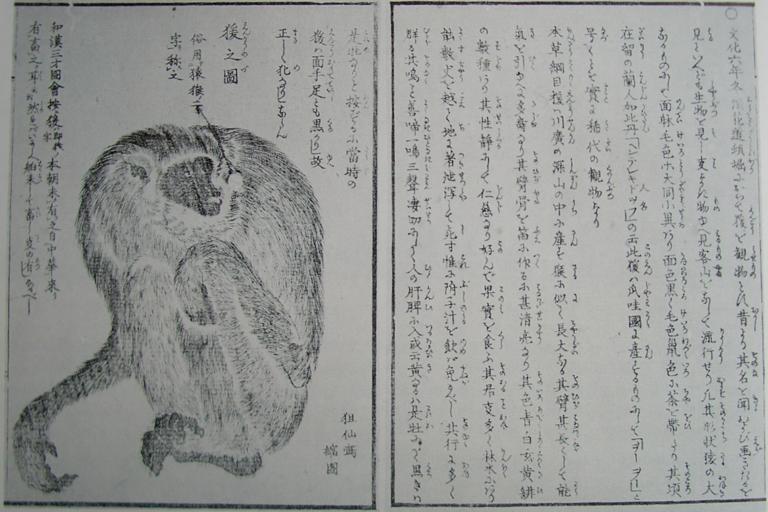 Keywords: First-gibbon-in-Japan.png Hendrik Doeff who was then staying here said that this gibbon occurs on the island of Java where it is called wau-wau Truly an extraordinary sight According to Gulik wau-wau refers in Indonesia to the species Hylobates Moloch; it must have been brought to Japan on a Dutch ship The book Kenkadō-zatsuroku by Kimura Kenkadō 1736-1802 published in 1856 Reproduced in Robert Van Gulik's Gibbon in China 1967 p 99 Drawing by Mori Sosen 1747-1821 a famous Japanese monkey painter; text by himself of Kimura Kenkadō 1736-1802 Probably 1809 the date of the events described or soon thereaafter PD-Art Paintings of monkeys by Mori Sosen Robert van Gulik Gibbons in art Hendrik Doeff |