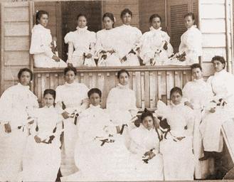 | Keywords: First Graduating Class of the Kamehameha School for Girls, 1897.jpg en Bottom row left to right Keluia Liu Jessie Mahoahoa Julia Lovell Helen Kalola Miriam Hale Lewa Iokia Elizabeth Kahanu Julia Akana Malie Kapali Top row left to right Kalei Ewaliko Aoe WongKong Elizabeth Kamau Hattie Kekolohe Lydia Aholo Elizabeth Keliʻinoi Lydia Aholo was keiki hanai of Queen Liliʻuokalani http //kapalama ksbe edu/archives/FirstYears/ksg1897 php Kamehameha Schools Archives Author ~ 1897 Kamehameha Schools Native Hawaiians Black and white photographs of school class groups 1897 in Hawaii Kamehameha Schools alumni Kamehameha Schools Archives PD-old |