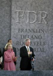 | Keywords: First Lady Hillary Clinton and President Bill Clinton at the 1997 dedication of the Franklin Delano Roosevelt Memorial in Washington, D.C LCCN2011634226.tif 1 transparency color ; 4 x 5 in or smaller Notes Title date and keywords provided by the photographer ; Digital image produced by Carol M Highsmith to represent her original film transparency; some details may differ between the film and the digital images ; Forms part of the Selects Series in the Carol M Highsmith Archive ; Gift and purchase; Carol M Highsmith; 2011; DLC/PP-2011 124 ; Credit line Photographs in the Carol M Highsmith Archive Library of Congress Prints and Photographs Division 1997 Creator Carol M Highsmith Library of Congress Catalog http //lccn loc gov/2011634226 Image download https //cdn loc gov/master/pnp/highsm/16000/16033a tif Original url http //hdl loc gov/loc pnp/highsm 16033 No known restrictions on publication LOC-image highsm 16033 PD-Highsmith Images uploaded by Fæ Photographs by Carol M Highsmith |