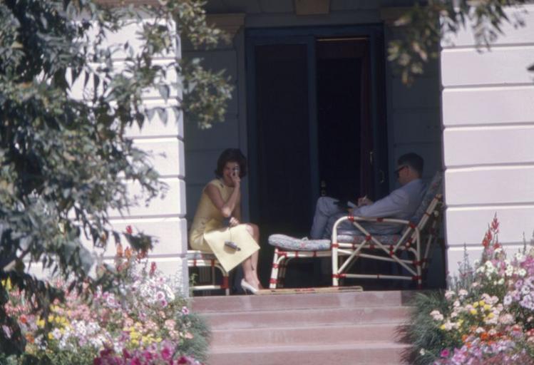 | Keywords: First Lady Jacqueline Kennedy Snaps Photograph in India.jpg en First Lady Jacqueline Kennedy left takes a photograph while sitting on the porch of Teen Murti Bhavan the official residence of Prime Minister of India Jawaharlal Nehru United States Ambassador to India John Kenneth Galbraith sits at right New Delhi India 1962-03-14 http //www jfklibrary org/Asset-Viewer/Archives/JFKWHP-1962-03-14-D aspx Cecil Stoughton other versions PD-USGov Jacqueline Kennedy Onassis in India Uploaded with UploadWizard Teen Murti Bhavan John Kenneth Galbraith 1962 in Delhi |