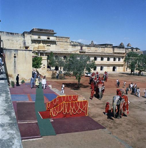 Keywords: First Lady Jacqueline Kennedy rides an elephant in India (6).jpg en First Lady Jacqueline Kennedy at left wearing yellow dress and Indian Ambassador to the United States B K Nehru behind walk with several unidentified persons toward a platform in the courtyard of Amber Palace in Jaipur Rajasthan India Mrs Kennedy and others would take elephant rides through the courtyard 1962-03-19 http //www jfklibrary org/Asset-Viewer/Archives/JFKWHP-1962-03-19-D aspx Cecil Stoughton other versions PD-USGov Jacqueline Kennedy Onassis in India Uploaded with UploadWizard Uploaded with UploadWizard Jacqueline Kennedy Onassis in India People at Amber Fort Elephants at Amber Fort People with elephants in Rajasthan 1962 in Jaipur Braj Kumar Nehru |