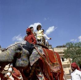 | Keywords: First Lady Jacqueline Kennedy rides an elephant in India (5).jpg en First Lady Jacqueline Kennedy right and her sister Princess Lee Radziwill of Poland left ride an elephant Bibia in the courtyard of Amber Palace in Jaipur Rajasthan India The Home Minister of Rajasthan Mathura Das Mathur sits behind the First Lady and Princess Radziwill 1962-03-19 http //www jfklibrary org/Asset-Viewer/Archives/JFKWHP-1962-03-19-D aspx Cecil Stoughton other versions PD-USGov Jacqueline Kennedy Onassis in India Uploaded with UploadWizard Uploaded with UploadWizard Jacqueline Kennedy Onassis in India Lee Radziwill People at Amber Fort Elephants at Amber Fort People with elephants in Rajasthan 1962 in Jaipur Mathura Das Mathur |