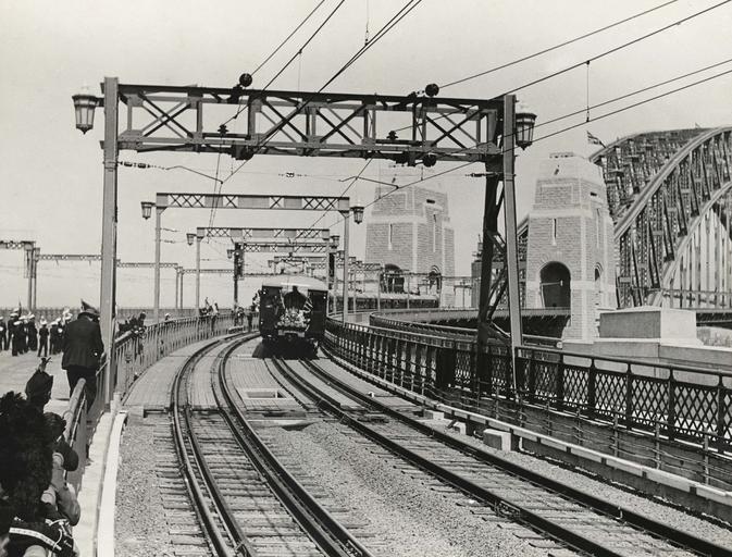 | Keywords: archives state records nsw staterecordsnsw newsouthwales blackandwhite sydney harbour bridge sydneyharbourbridge overhead contact line overheadcontactline pylon milsons point milsonspoint train vehicle railroad architecture infrastructure building building structure locomotive outdoor sport black and white Title: First Passenger Train to Cross Bridge Dated: 19/03/1932 Digital ID: 12685_a007_a00704_8734000067r Rights: www.records.nsw.gov.au/about-us/rights-and-permissions We'd love to hear from you if you use our photos/documents. Many other photos in our collection are available to view and browse on our website using Photo Investigator. Title: First Passenger Train to Cross Bridge Dated: 19/03/1932 Digital ID: 12685_a007_a00704_8734000067r Rights: www.records.nsw.gov.au/about-us/rights-and-permissions We'd love to hear from you if you use our photos/documents. Many other photos in our collection are available to view and browse on our website using Photo Investigator. Title: First Passenger Train to Cross Bridge