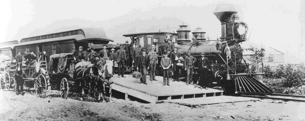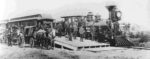 | Keywords: port arthur portarthur thunder bay thunderbay transportation transcontinental cpr cp rail cprail c.p.r. engine 33 cprengine33 trains horses engines wagons animals ceremony canadian pacific railway canadianpacificrailway mayors politics mayor g.h. mcdonnell mayorghmcdonnell pacific express pacificexpress ontario canada history blackandwhite monochrome outdoor black and white Date: 30 June 1886 Description: The historic first sod on the Canadian Pacific Railway's main line was turned four miles west of Fort William on June 1, 1875 in what is now part of the City of Thunder Bay. This fragile band of steel was designed to bind the far-flung territories of Canada into a nation. A decade after the first sod was turned, Canada’s transcontinental railway became a reality when Donald Smith drove the last spike at Craigellachie, B.C. On June 28, 1886, the first transcontinental train steamed out of Dalhousie Square Station in Montreal. She consisted of two baggage cars, a mail car, one second-class coach, two immigrant sleepers, two first-class coaches, two sleeping cars, and a diner. At 4 p.m. on June 30, right on schedule, the “Pacific Express” rolled into the Lakehead. As this picture illustrates, a crowd led by Mayor G.H. McDonnell, met her at the Port Arthur station. She couldn’t linger, however, and the ceremony was short. She had a schedule to keep. On July 4, the “Pacific Express” completed her first transcontinental run at Port Moody, B.C. Accession No.: 972.2.53 Date: 30 June 1886 Description: The historic first sod on the Canadian Pacific Railway's main line was turned four miles west of Fort William on June 1, 1875 in what is now part of the City of Thunder Bay. This fragile band of steel was designed to bind the far-flung territories of Canada into a nation. A decade after the first sod was turned, Canada’s transcontinental railway became a reality when Donald Smith drove the last spike at Craigellachie, B.C. On June 28, 1886, the first transcontinental train steamed out of Dalhousie Square Station in Montreal. She consisted of two baggage cars, a mail car, one second-class coach, two immigrant sleepers, two first-class coaches, two sleeping cars, and a diner. At 4 p.m. on June 30, right on schedule, the “Pacific Express” rolled into the Lakehead. As this picture illustrates, a crowd led by Mayor G.H. McDonnell, met her at the Port Arthur station. She couldn’t linger, however, and the ceremony was short. She had a schedule to keep. On July 4, the “Pacific Express” completed her first transcontinental run at Port Moody, B.C. Accession No.: 972.2.53 |