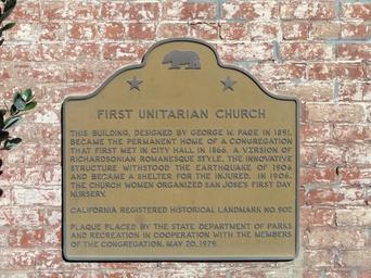 | Keywords: First Unitarian church, San Jose, California - DSC03847.JPG First Unitarian Church on St James Park San Jose California USA Designed by George W Page in 1891 California Registered Historical Landmark No 902 Daderot 2012-02-02 18 28 31 Daderot cc0 cc0 First Unitarian church San Jose California Plaques in San Jose California California Historical Landmarks plaques | ||||